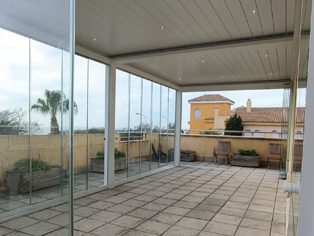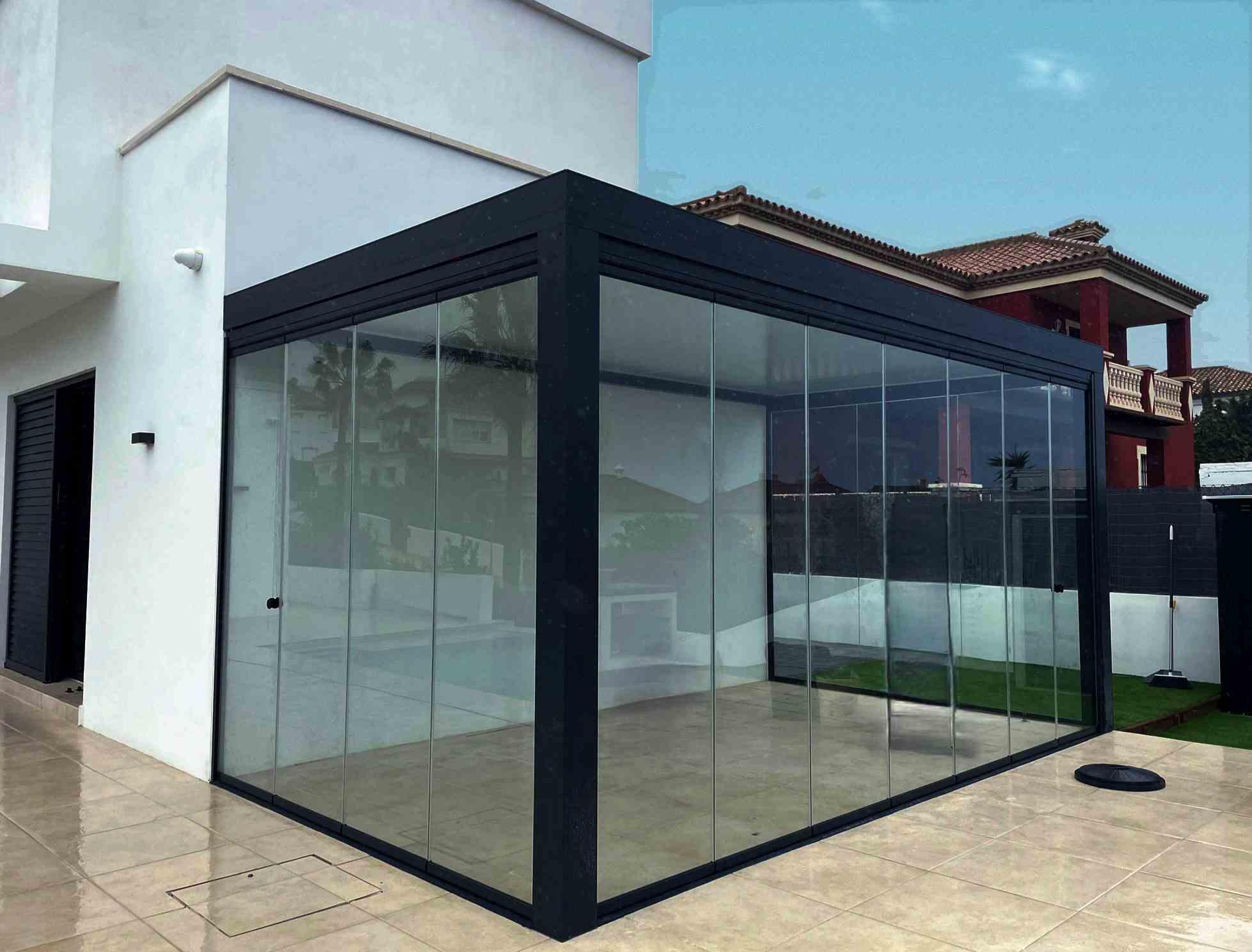 Elige la solución integral de Espaluz: pérgola bioclimática combinada con cortinas de cristal. Gana un espacio nuevo, funcional y habitable durante todo el año, protegido del sol, viento y lluvia, con diseño limpio y contemporáneo.